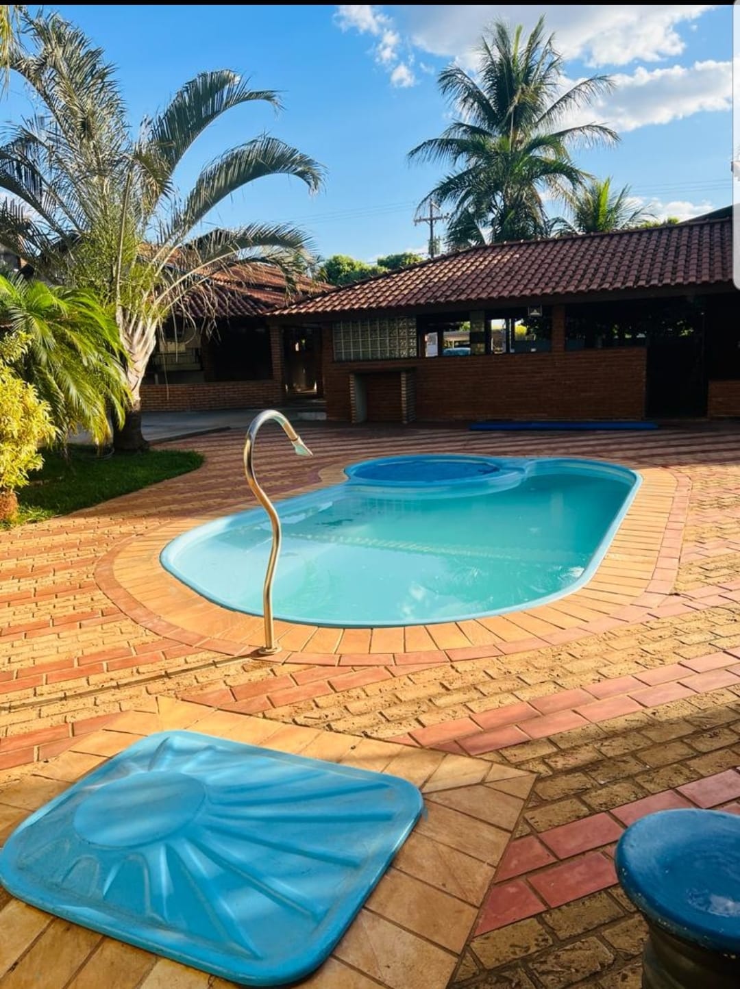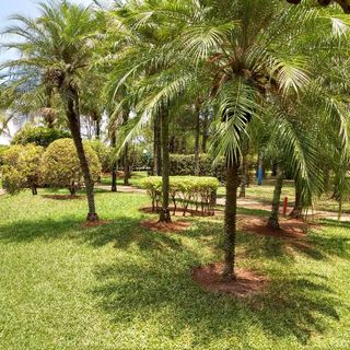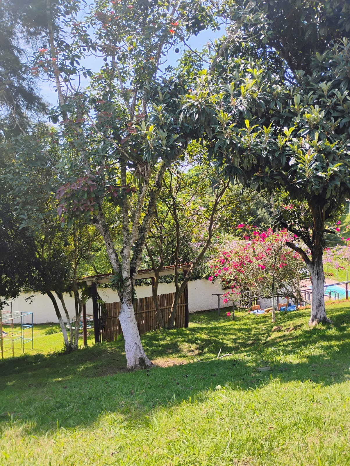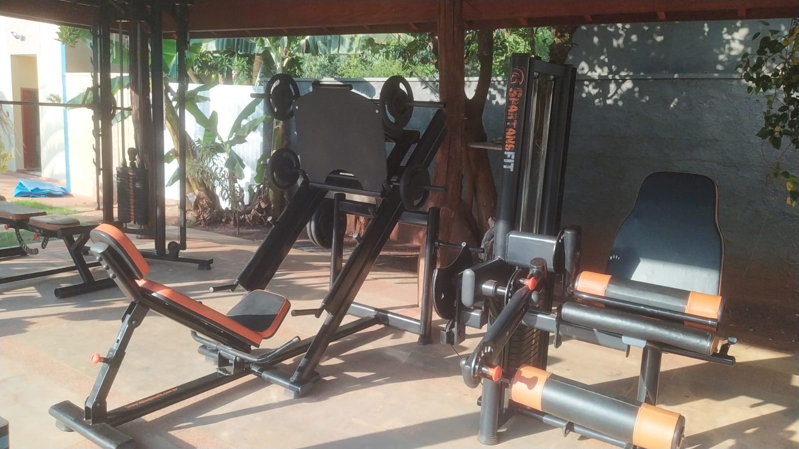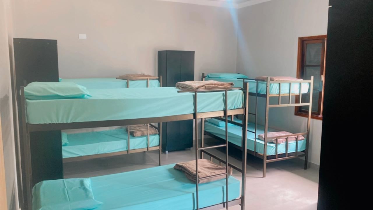 Ambientes equipados com piscina, academia, campo e quadra para esportes, refeitório, além de uma área ampla.